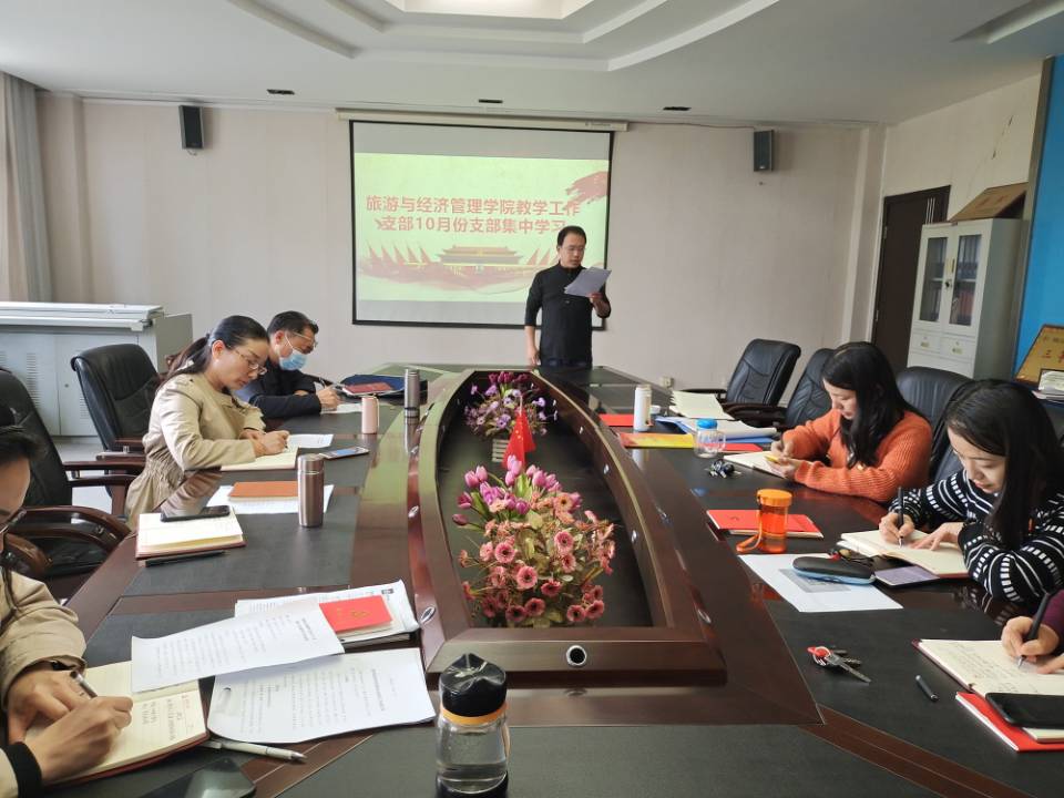 10月9日下午,旅游与经管学院教学工作支部全体党员在党员活动室开展了10月份支部集中学习活动,此次活动由教工支书记吴冉冉同志主持,旅游与经济管理学院教工支部全体党员参加。