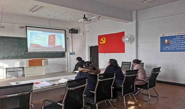活动中党总支副书记江珂同志带领大家重温入党誓词,深入学习“党员不能信仰宗教”,观看《弘扬宪法精神,树立法治信仰》宣传片,徐梅同志带领大家学习“以案五说”,集中学习习近平总书记在中央全面依法治国工作会议上的重要讲话精神,并展开讨论。