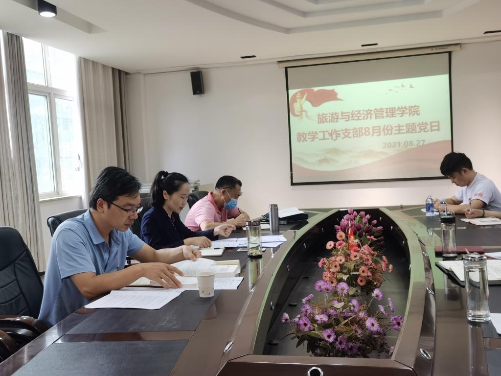 2021年8月27日下午3:00,旅游与经济管理学院教学工作支部组织全体党员教师在党员活动室开展8月支部主题党日活动。