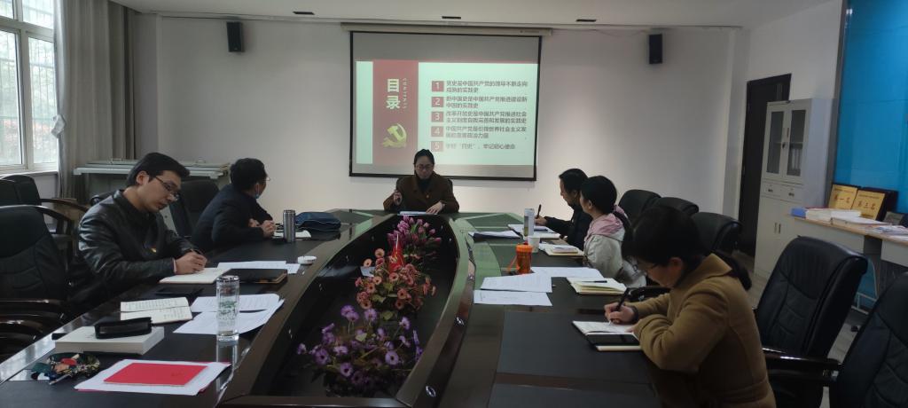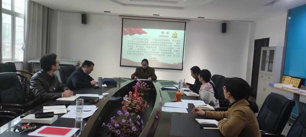 会上,吴冉冉同志讲党课—— “四史”学习教育。吴冉冉同志分别从“四史”是中国共产党的领导不断走向成熟的实践史、新中国史是中国共产党推进建设新中国的实践史、改革开放是中国共产党推进社会主义制度自我完善和发展的实践史、中国共产党是引领世界社会主义发展的重要政治力量和学好四史牢记初心五个方面进行讲解。