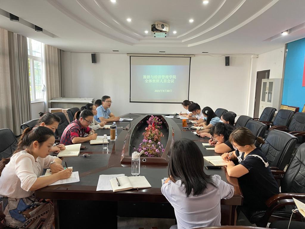 9月30日下午,旅游与经济管理学院在党员活动室召开了全体坐班教师工作会,会议由旅游与经济管理学院副院长曾建平同志主持。