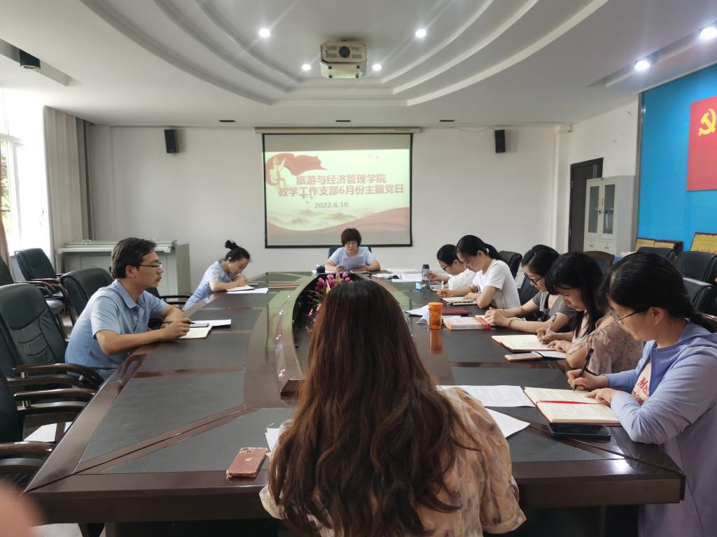 2022年6月10日,教学工作支部在党员活动室召开6月支部主题党日活动,支部全体党员参加,支部书记文静同志主持会议。