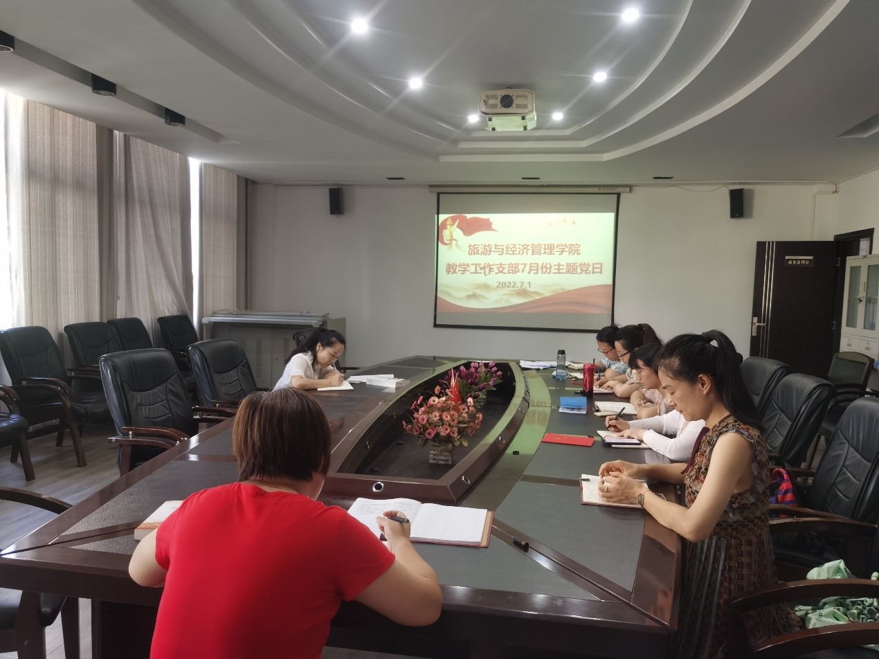 2022年7月1日下午3:00,旅游与经济管理学院教学工作支部开展了7月份支部主题党日活动,会议由支部书记文静同志主持。