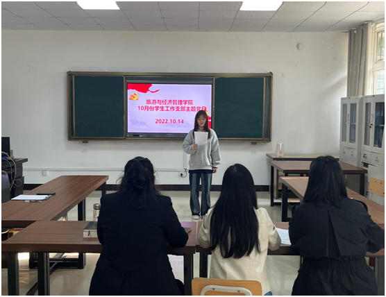 2022年10月14日下午3:00,旅游与经济管理学院学生工作支部开展了10月份支部主题党日活动,会议由支部书记宋萍同志主持。