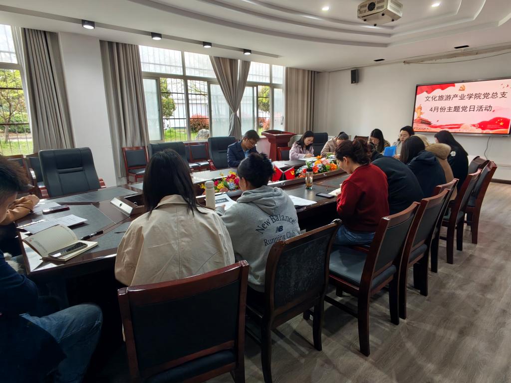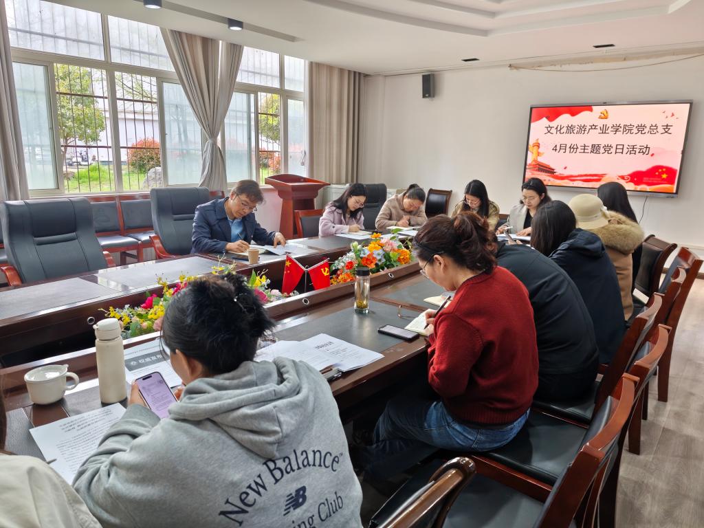 2026年4月3日,文化旅游产业学院党总支在党员活动室组织开展4月主题党日活动。