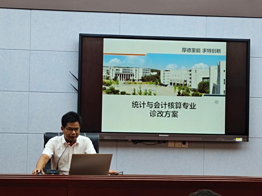6月28日上午,在云桂楼学术报告厅举办了二级学院重点专业诊改方案评审汇报会。我院统计与会计核算专业教研室主任廖超如进行了评审汇报。我院教研室主任以上人员参加了汇报会。