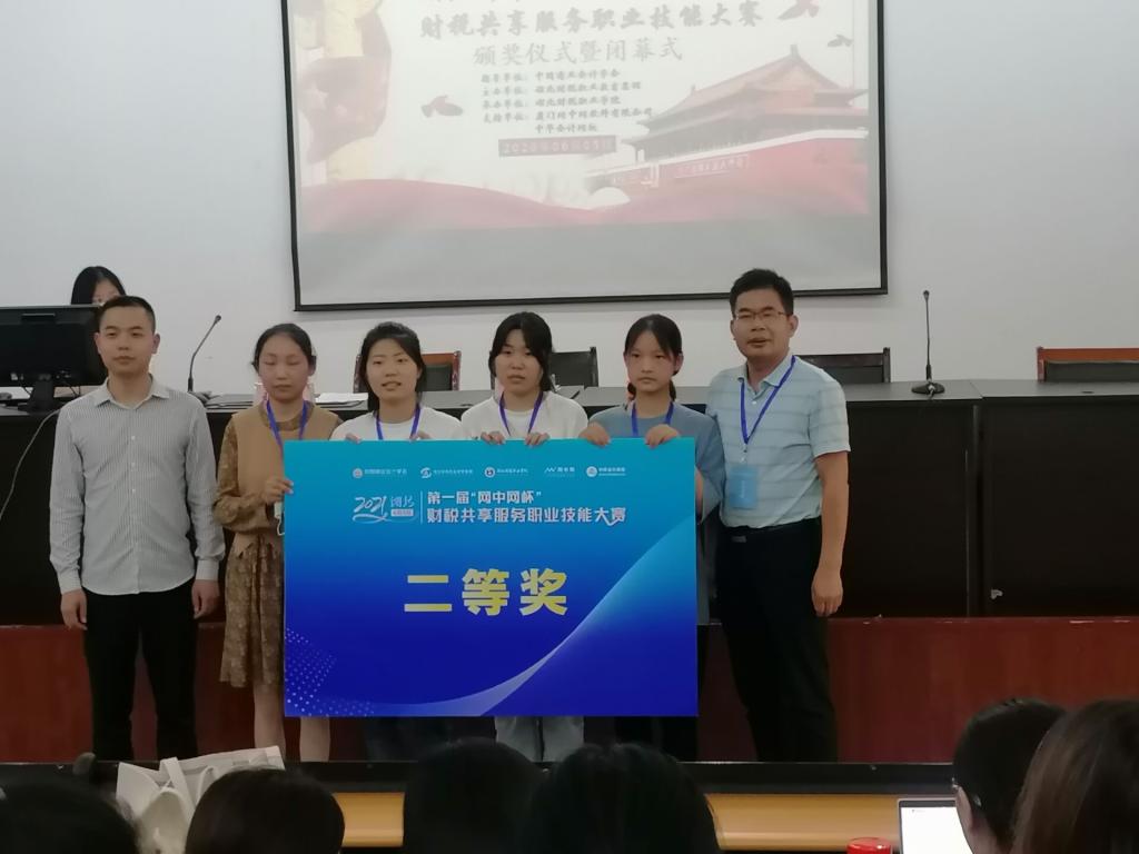 6月6日,湖北省第一届“网中网杯”1+X财务共享服务职业技能大赛落下帷幕。来自全省29所高职院校在湖北财税职业学院实训楼参加了本次大赛,我院19会计班2支代表队分别获得二、三等奖。