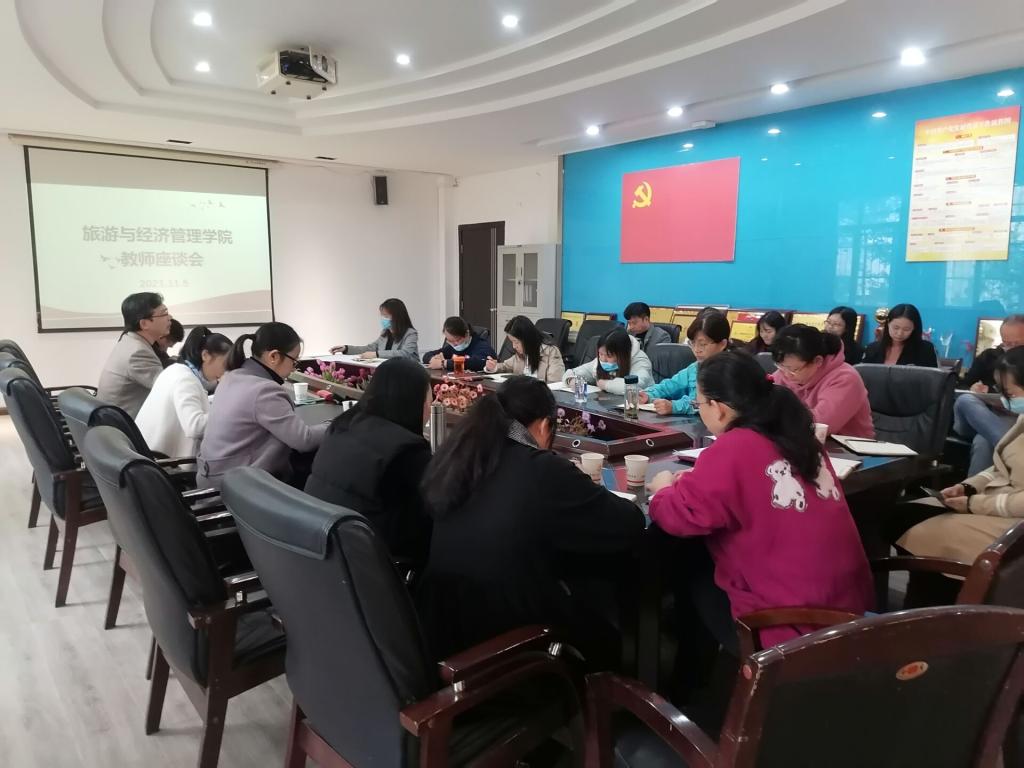 11月05日下午,旅游与经济管理学院全体教师在党员活动室召开了教师座谈会,会议由旅游与经济管理学院副院长曾建平同志主持。