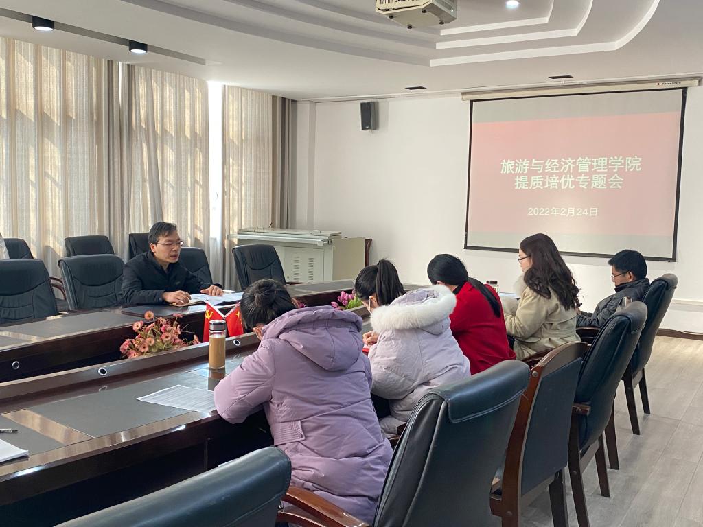 为使学院深刻认识实施“提质培优”的重大意义,准确把握“提质培优”的建设任务,快速理清“提质培优”的建设思路,扎实推动“提质培优”的建设速度,确保“提质培优”建设的整体水平,2月24日,旅游与经济管理学院在商务谈判室召开“提质培优”专题会。会议由副院长曾建平主持,会计教研室主任廖超如、旅游教研室主任叶晓庆、电商教研室主任谢欣、教务科主任文静等参加会议。
