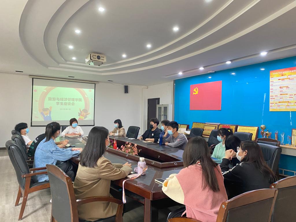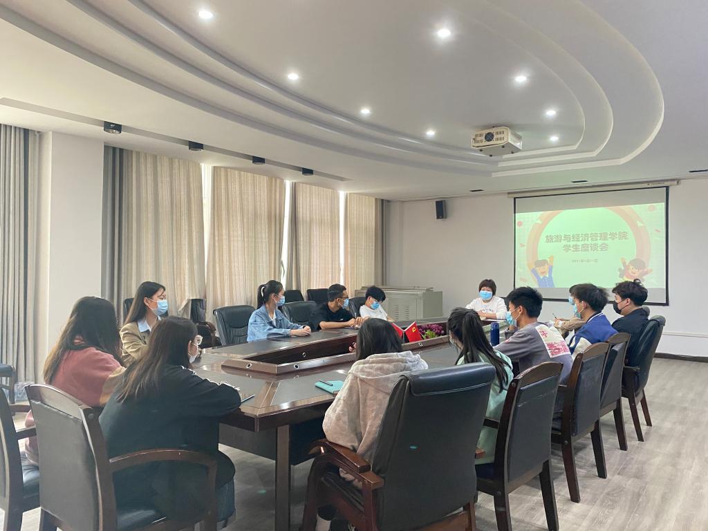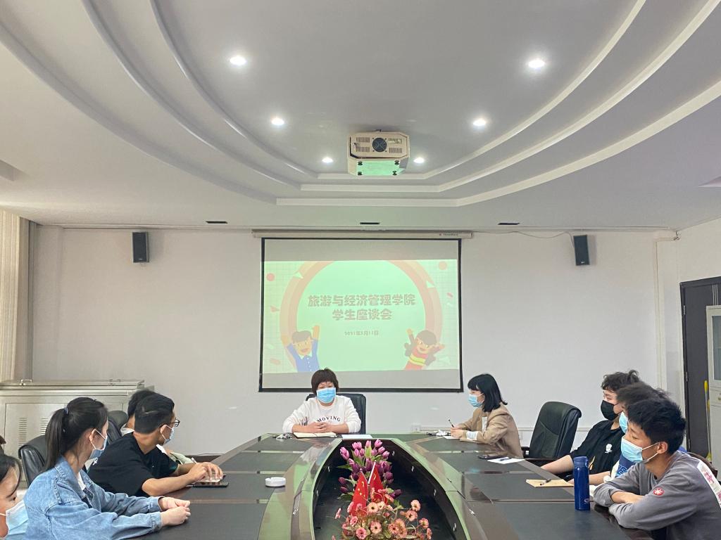 5月11日下午,旅游与经济管理学院在商务谈判室召开学生座谈会。教学科研办公室主任文静出席座谈会,来自全院各班级的12名班级代表参加座谈会。