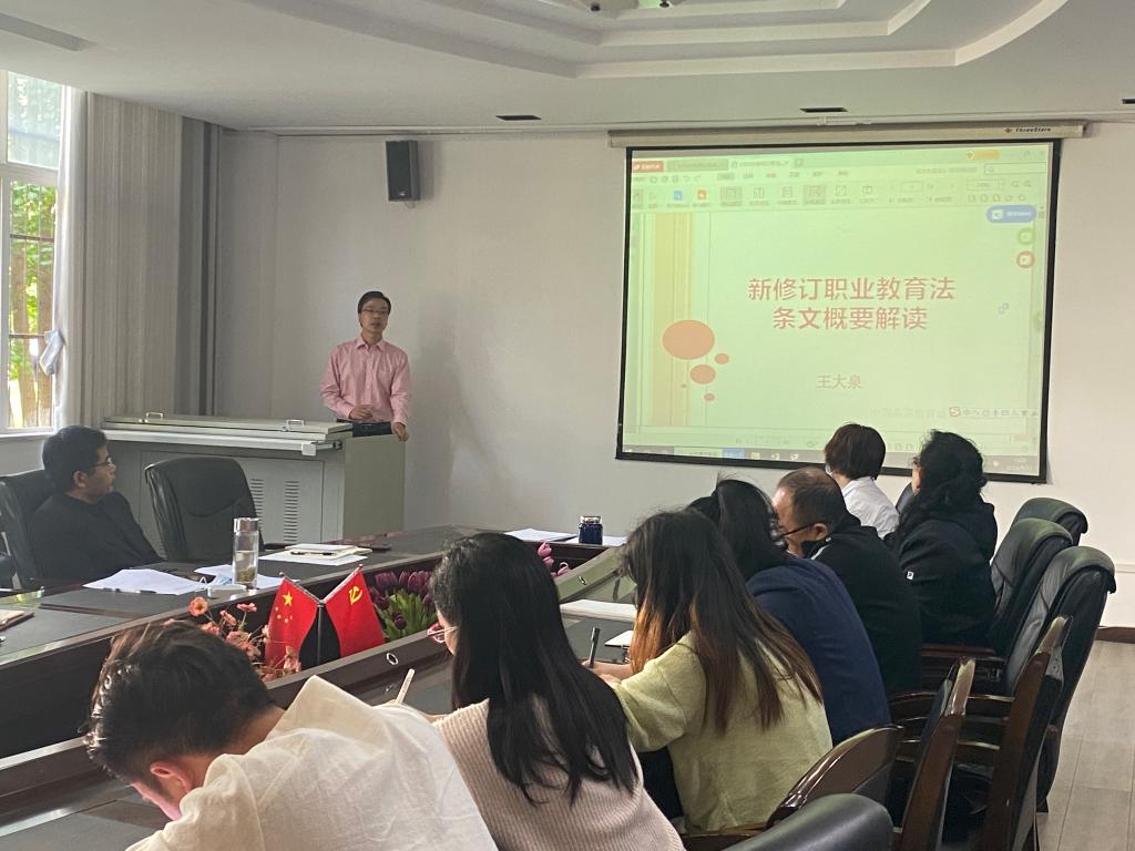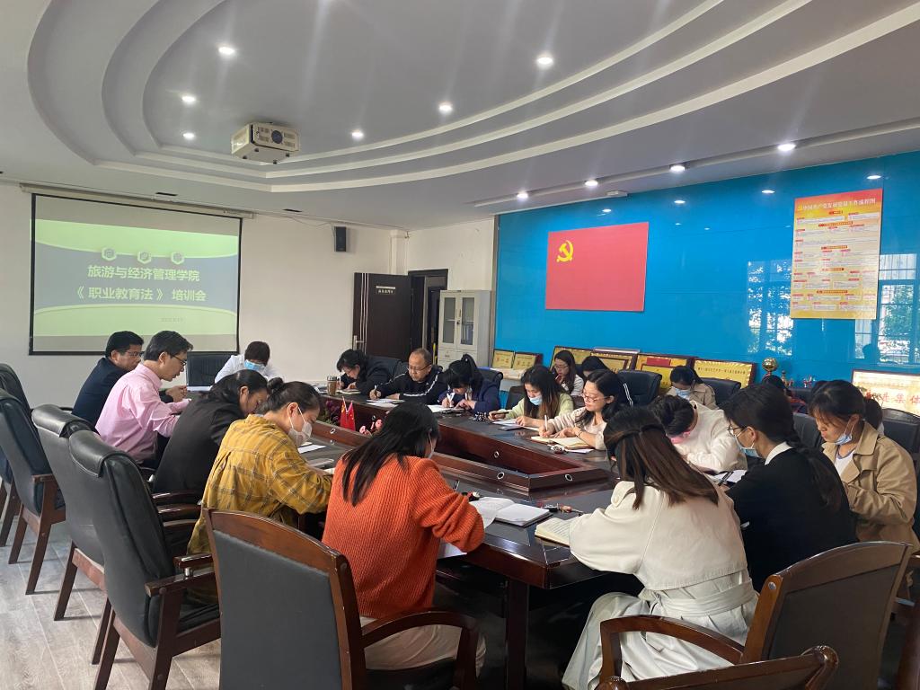 5月13日下午,旅游与经济管理学院举办《职业教育法》专题培训会。副院长曾建平、副书记江珂及全体教师出席会议。培训会曾建平主讲。