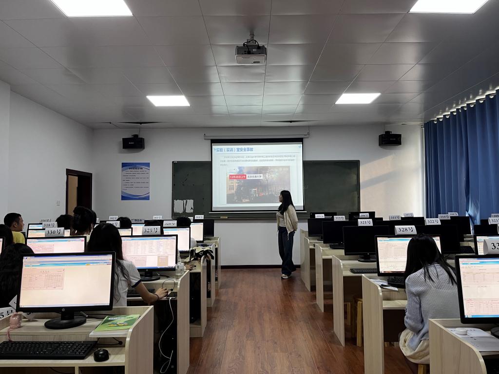 在培训时,老师展示了实训室安全事故案例,给学生起到一个警示的作用,接着讲解了实训室安全须知、用电安全、用水安全、仪器设备使用安全、化学药品使用安全、计算机机房使用安全及消防安全等方面的安全知识教育,使学生明确掌握实训室安全知识的重要性。最后对学生进行了实训室安全知识测试,检验学生对实训室安全知识的掌握程度,有针对性进行安全实操练习。