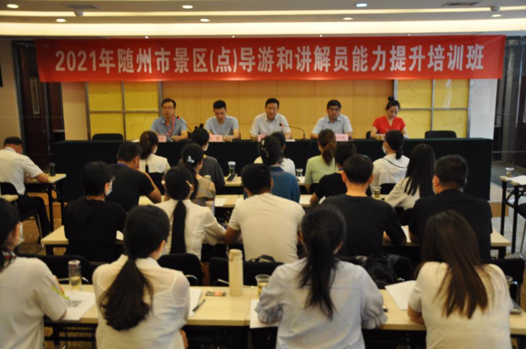 2021年6月23日,由随州市文化和旅游局及随州职业技术学院联合举办的“2021年随州市景区(点)导游和讲解员能力提升培训班”顺利开班,来自随州各县、市、区,包括随州高新区、大洪山风景名胜区景区(点)、旅游特色小镇和村、文物博物馆单位、纪念馆等从事导游、讲解工作人员共计50名齐聚随州曾都宾馆,开始为期4天的封闭学习。