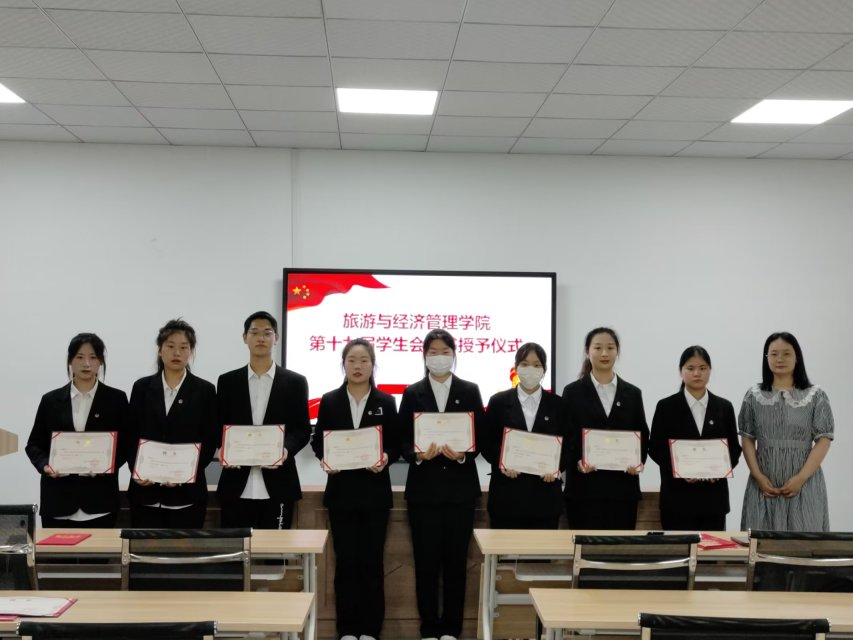 6月16日中午,旅游与经济管理学院第十九届学生会聘书授予仪式在旅游培训中心顺利举行。院团总支书记何湛苑、辅导员王琰及学生会干部出席了本次活动。