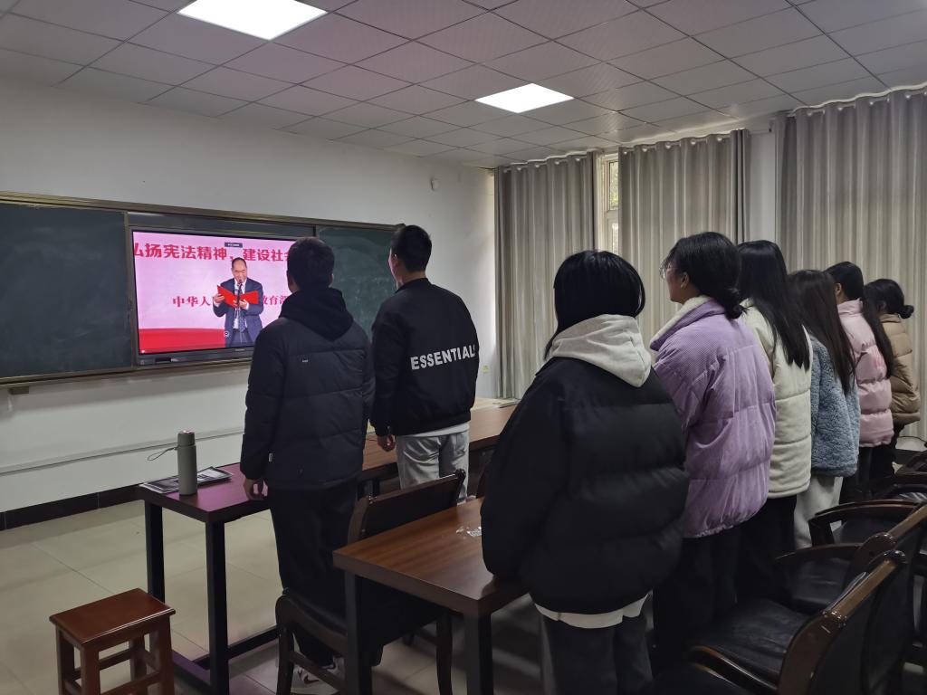 为全面学习贯彻党的二十大精神,深入学习贯彻习近平法治思想,推动青年学生宪法宣传教育常态化长效化,进一步增强宪法学习宣传的影响力和感染力,我院于2023年12月4日上午九点,组织各班学生参与学习“宪法晨读”活动,旨在培养高校学生法治思维,树立正确法律意识,弘扬宪法精神。