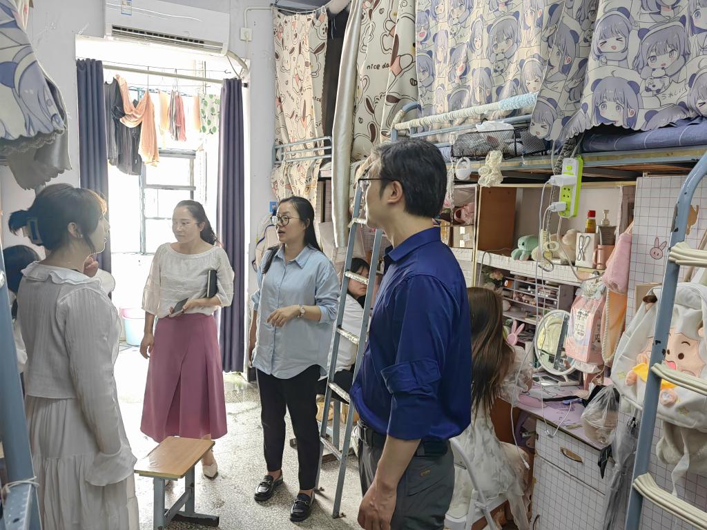 座谈会结束后,院领导到光华社区走访学生宿舍,与学生“零距离”交流,进一步了解学生的实际情况及需求,提醒学生们要注意个人卫生,养成寝室日常通风的良好习惯,在日常生活中也要时刻注意用电安全,营造一个安全、文明、舒适、温馨的住宿环境。