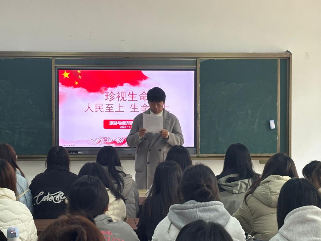 2024年11月25日,旅游与经济管理学院组织开展“珍视生命 人民至上 生命至上”为主题的团日活动。