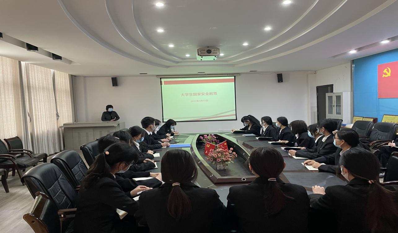 4月15日下午13:00,旅游与经济管理学院第二期青马培训班进行第三次授课,由教学工作支部书记文静老师主讲大学生国家安全观。