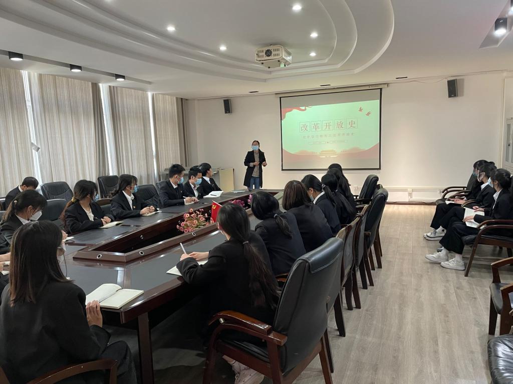 4月19日下午,旅游与经济管理学院党总支副书记江珂同志在党建活动室为第二期青马班学生主讲改革开放史。江珂同志围绕改革开放的业绩与成就、改革开放成功的原因分析、改革开放的未来思考三个方面来谈了学习改革开放史的新的体会。