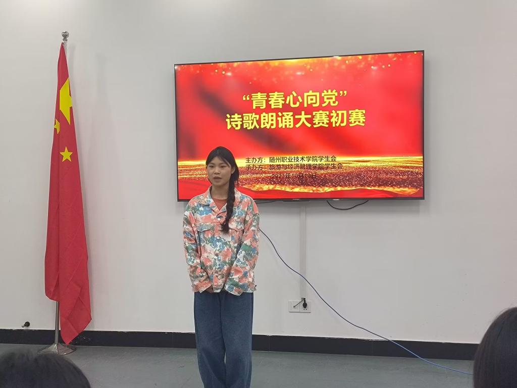 为弘扬中华民族优秀传统文化、提高大学生的人文素质和道德情操、推动校园文化建设。2023年10月19日,旅游与经济管理学院在一站式服务社区组织了“青春心向党”诗歌朗诵比赛初赛。