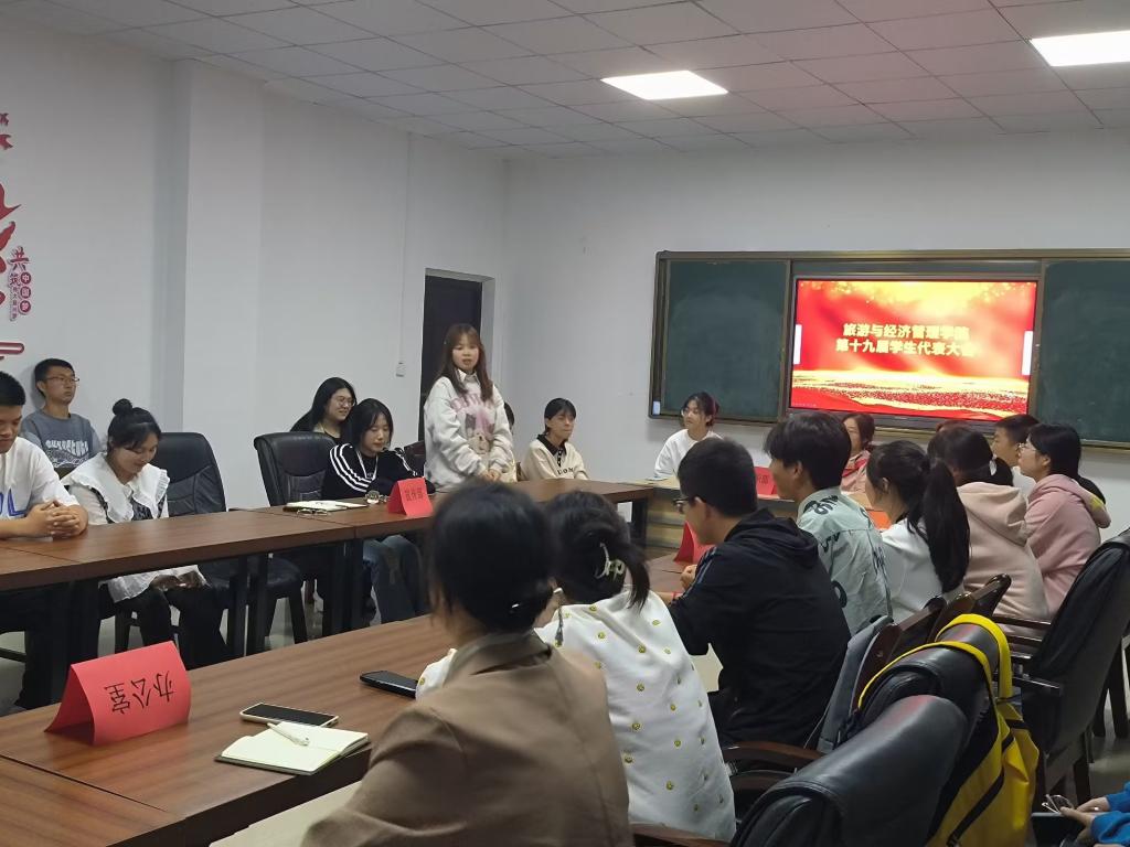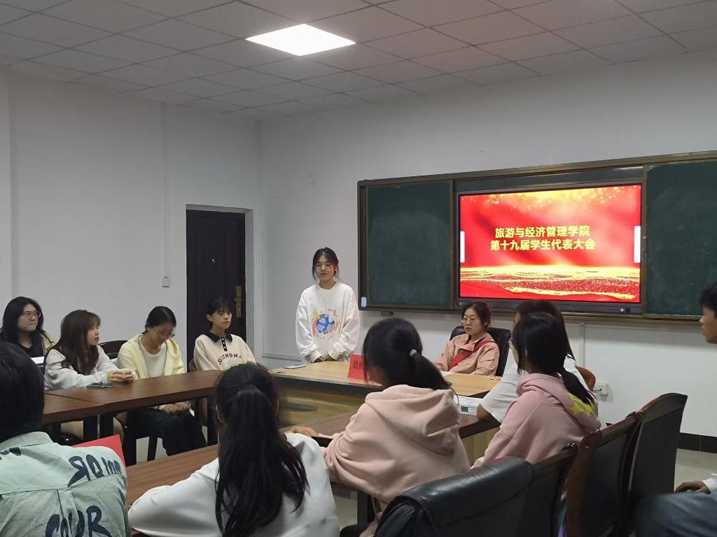 2023年10月16日,旅游与经济管理学院举办了第十九届学生代表大会,会中明确提出要本着以服务同学为原则,奉献自我,提升自我。在生活中,要内有素质,外有形象,上下团结,助力发展!同时要认真负责,按章办事,具备服务理念。