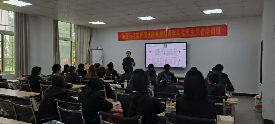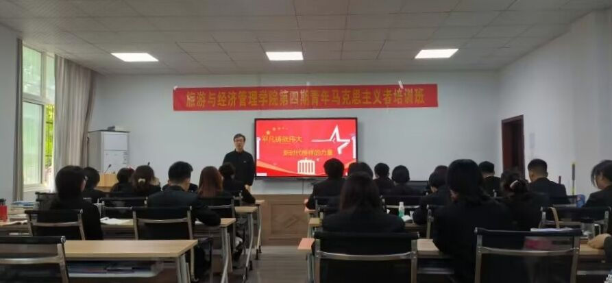 4月11日,旅游与经济管理学院院长曾建平在霞客楼一楼旅游培训室以“平凡铸就伟大,新时代榜样力量”为主题,给青马学员们进行授课。