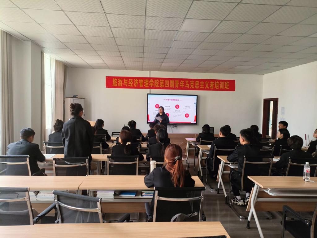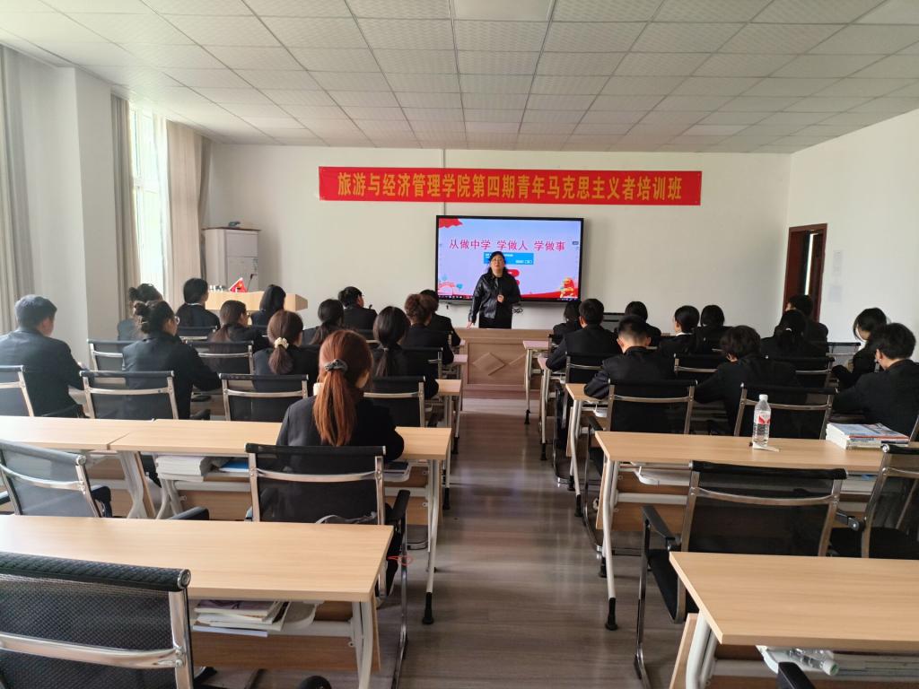 4月3日,第四期青年马克思主义者培训班在旅游培训室开展第二次授课,学工办主任宋萍担任此次课程的主讲师。