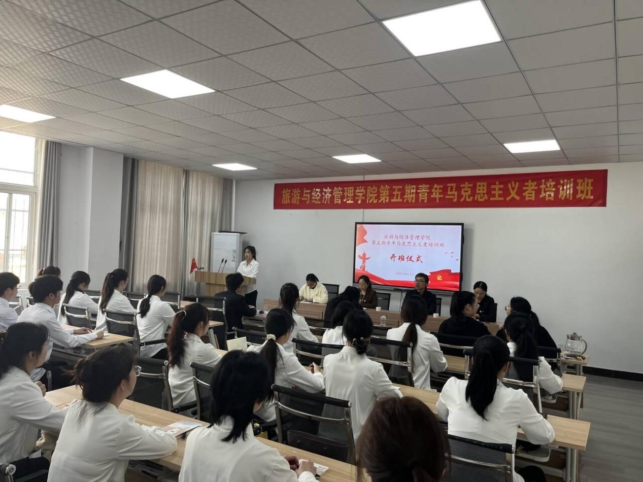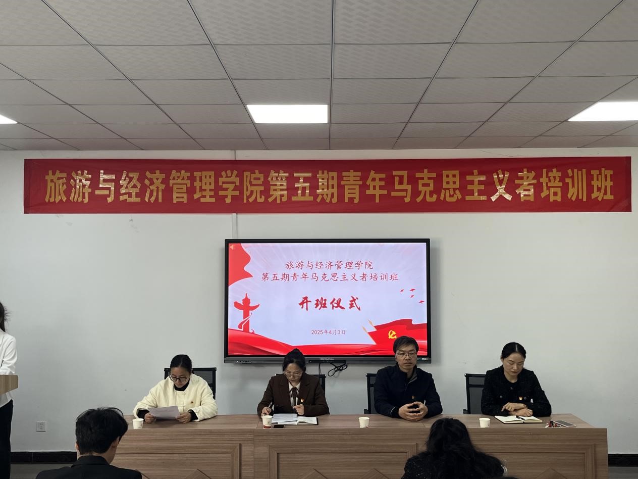 4月3日,旅游与经济管理学院第五期青年马克思主义者培训班开班仪式在霞客楼旅游培训教室隆重举行。学院党总支书记普青玲,党总支副书记、院长曾建平,党总支副书记江珂,副院长罗亚男,全体专兼职辅导员以及全体青马班学员参加了开班仪式。