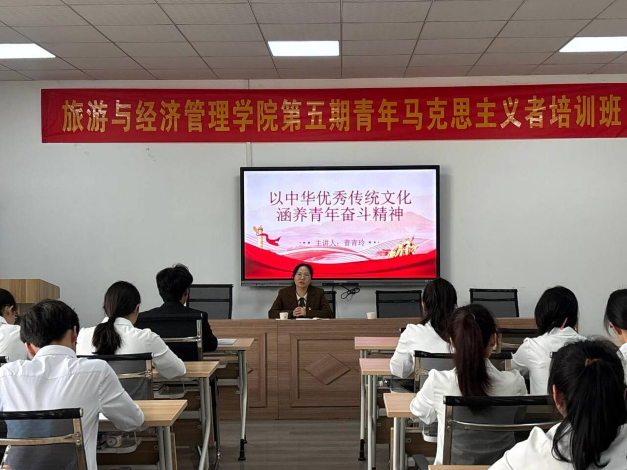 4月3日,旅游与经济管理学院在霞客楼旅游培训教室组织开展第五期青马班第一讲。学院党总支书记普青玲围绕“以中华优秀传统文化涵养青年奋斗精神”展开授课。