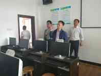 市教育局领导首先参观考查了电子商务、航空服务实训室,然后听取了我院负责人对两大专业办学条件的汇报介绍。