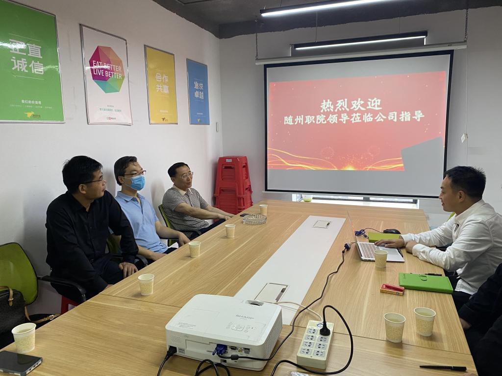 湖北神雕侠侣电子商务有限公司总经理孔伟对李高东一行表示欢迎,详细介绍了公司发展历程,提出共建移动商务专业,开展创新创业基地建设等校企合作形式。李高东介绍了学校办学特色、人才培养等方面情况,希望校企双方能够围绕人才培养、专业建设、学生实习就业、创业基地建设等方面进一步拓宽合作领域,创新合作机制,开展全方位、长期性、深层次的合作。2019级移动商务专业学生席耀强目前担任该公司大客户经理,介绍了其在企业工作和生活情况。