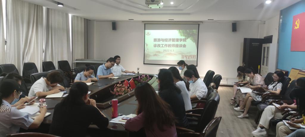 2022年6月1日,旅游与经济管理学院在商务谈判室召开诊改工作教师座谈会,会议由副院长曾建平同志主持。