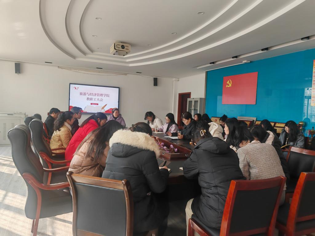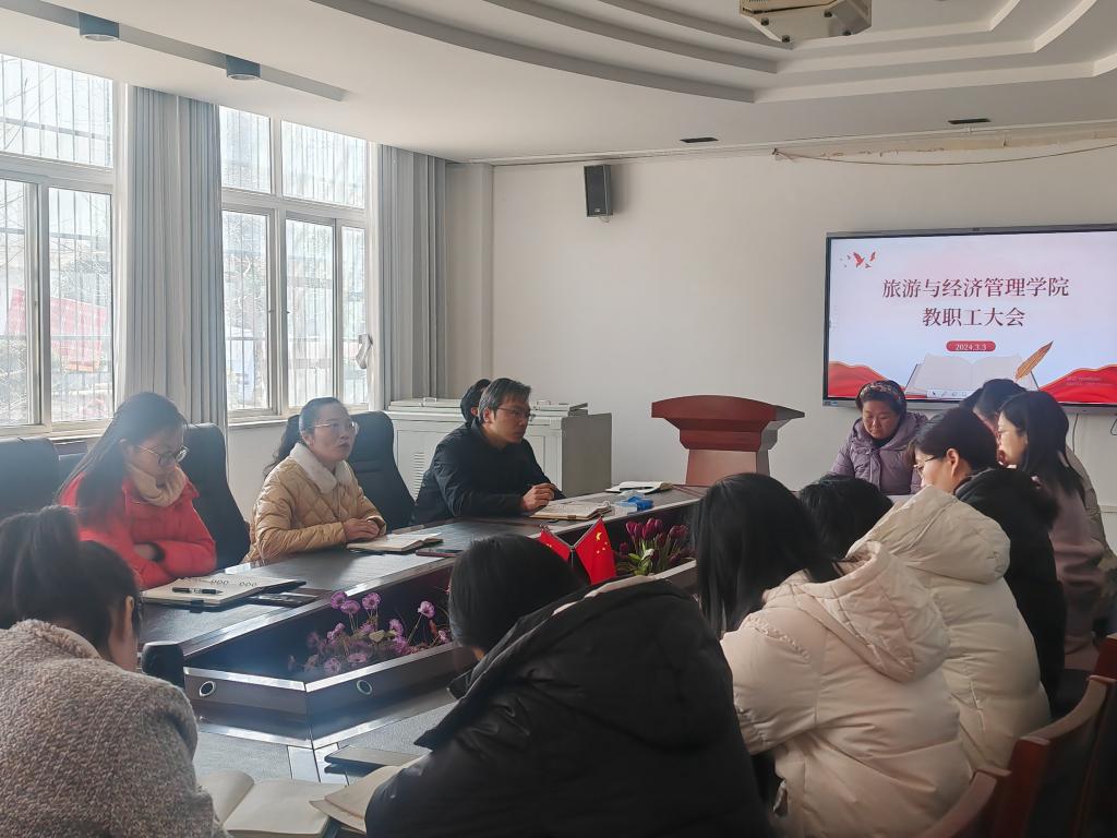 3月3日上午,旅游与经济管理学院在霞客楼会议室召开新学期第一次教职工大会暨新年收心会,会议由院长曾建平同志主持,经管学院全体教职工参加会议。