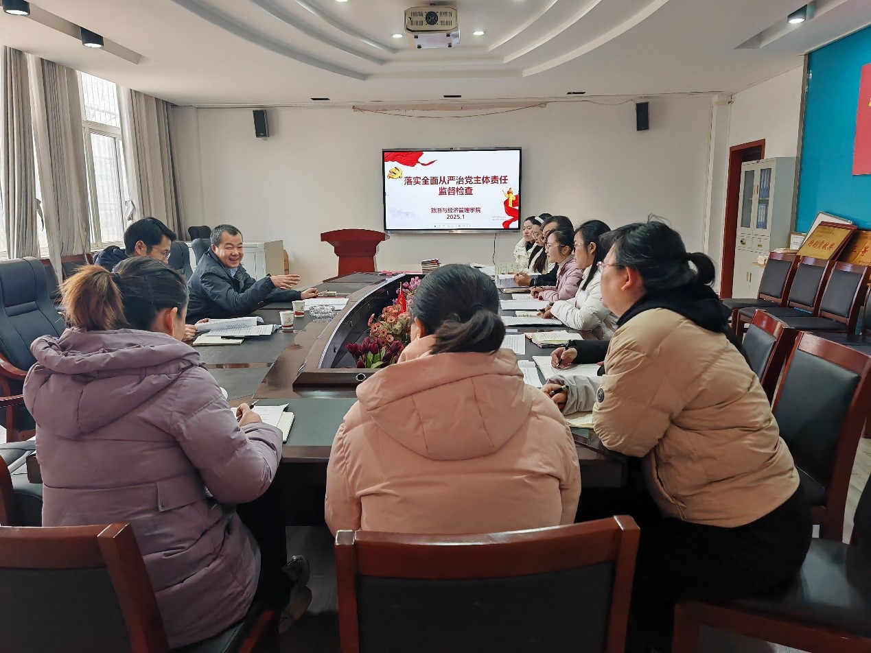 2025年1月2日,党委书记马大奎一行到旅游与经济管理学院调研督查2024年全面从严治党主体责任工作落实情况。