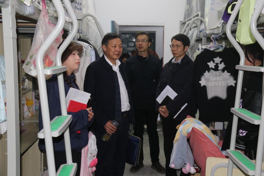 在学生宿舍走访环节,张凤成深入4-325等寝室,实地察看学生住宿环境与设施条件。看到今年新改装的床铺、书桌等硬件设施,他欣慰地对同学们说:“学校不断改善住宿条件,就是希望大家能有一个舒适安心的学习生活环境,要珍惜来之不易的条件,把精力集中在学业上,不负韶华、不负期望。” 走访中,他还细心询问同学们的住宿体验,倾听大家对宿舍管理的意见建议。