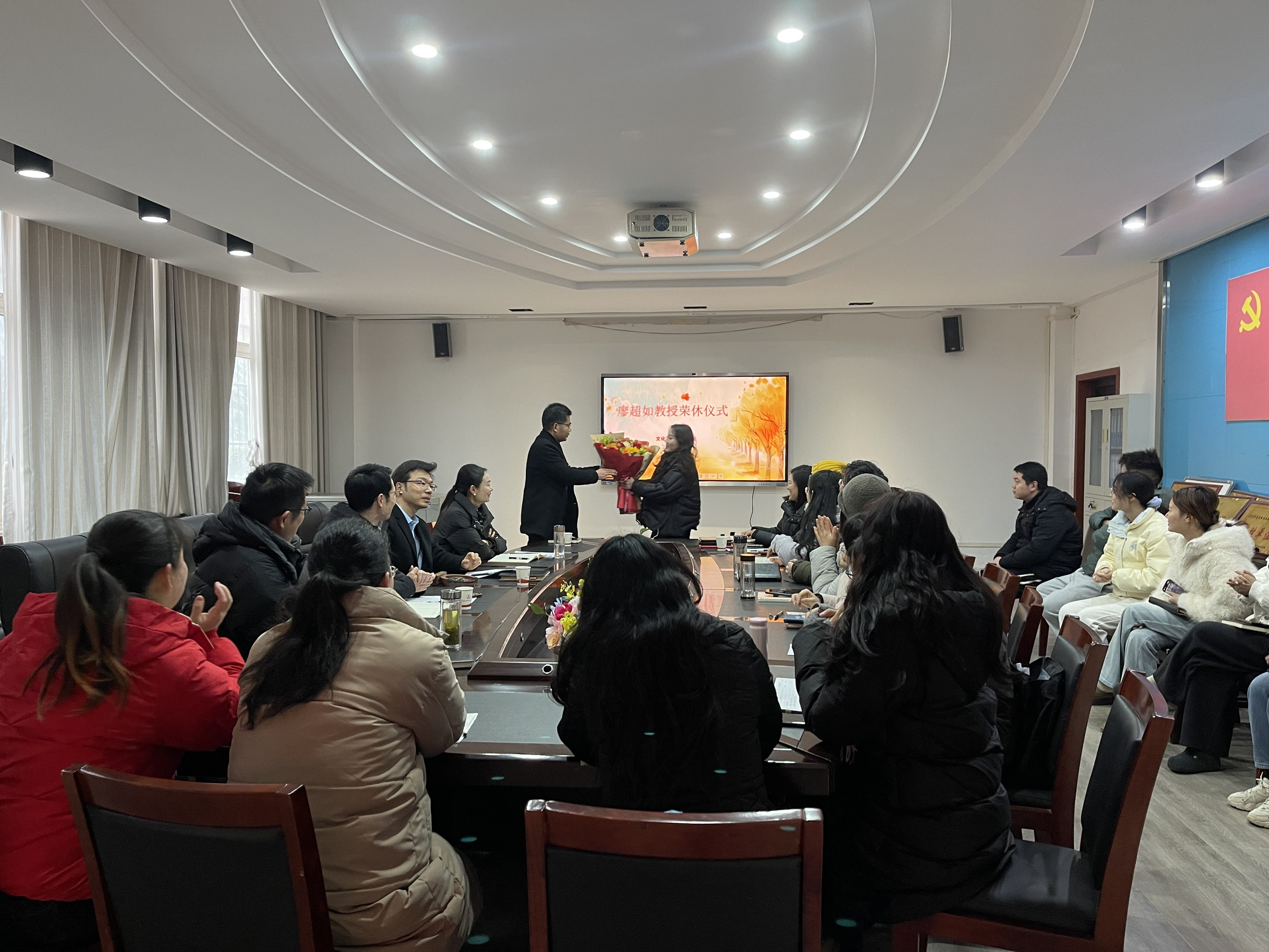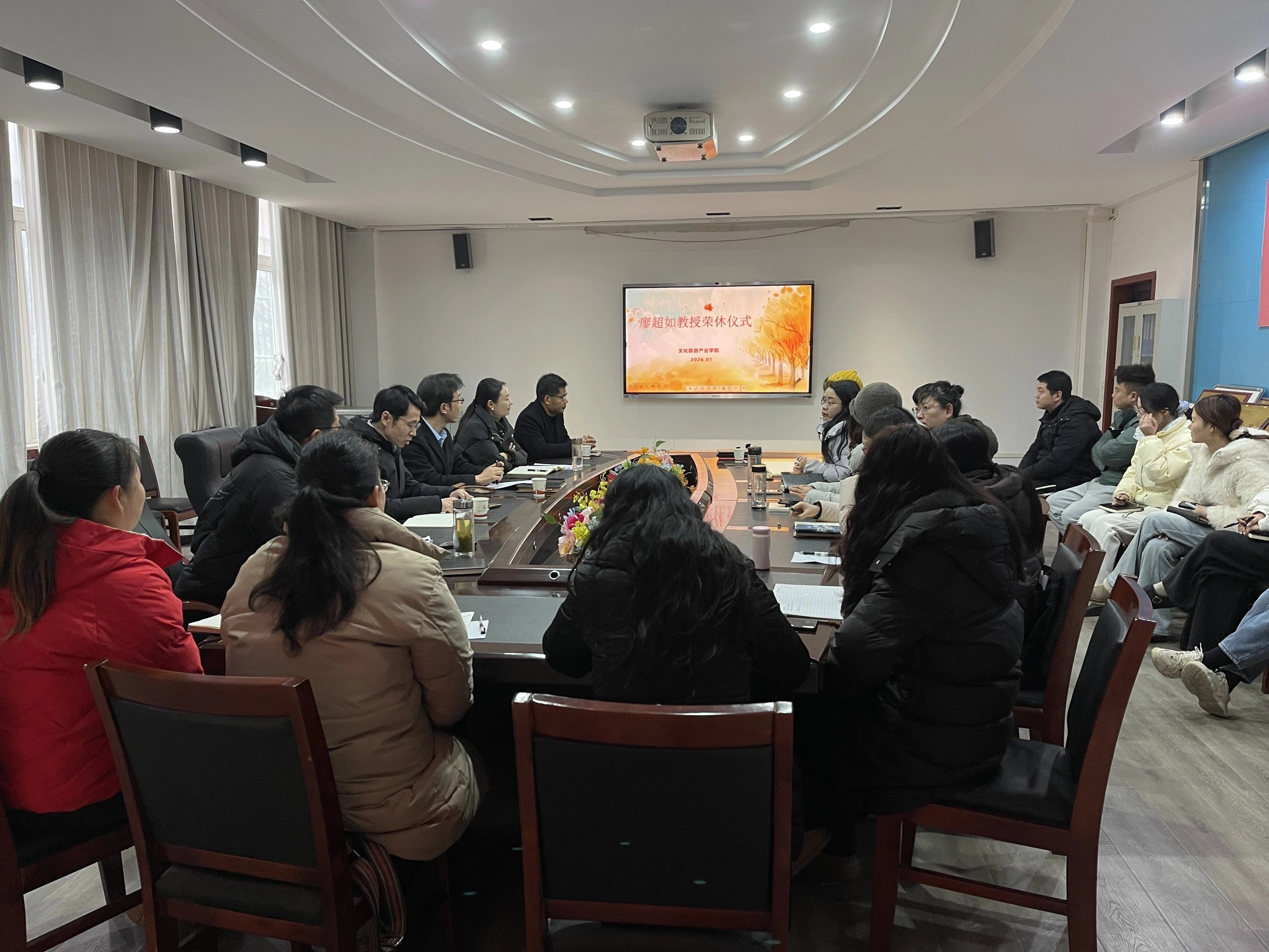 1月28日,文化旅游产业学院召开全体教职工大会,为廖超如教授举办荣休仪式。仪式由学院党总支书记黄兵主持。