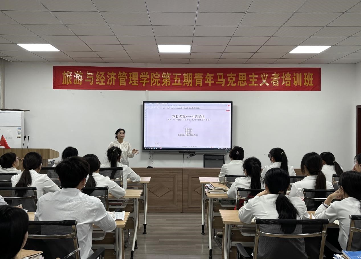 4月15日,学工办副主任王琰在霞客楼一楼旅游培训室,为第五期青马学员带来创新创业指导课。